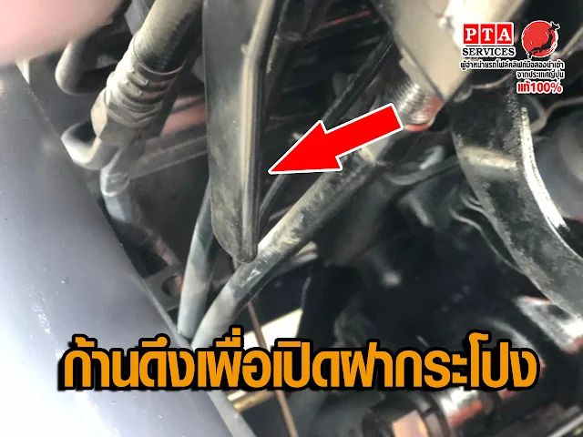 ดึงขึ้นพร้อมยกฝากระโปรงจะสามารถเปิดฝากระโปรงเบาะที่เรานั่งเพื่อดูห้องเครื่องยนต์ได้